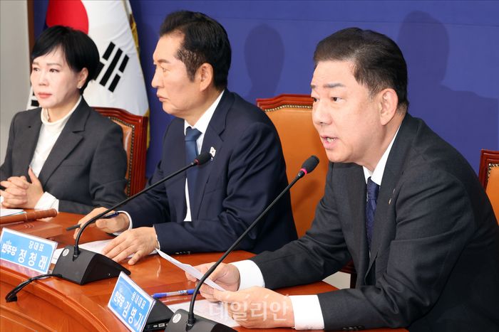 김병기 더불어민주당 원내대표가 10일 오전 서울 여의도 국회에서 열린 더불어민주당 최고위원회의에서 발언을 하고 있다.