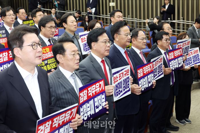 대장동 재판 항소 포기 규탄 피켓 든 송언석 원내대표