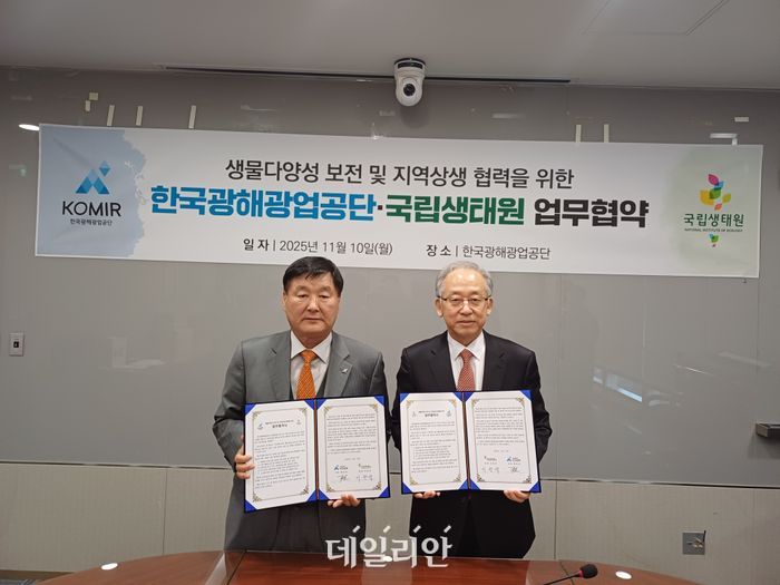 한국광해광업공단(KOMIR)은 10일 국립생태원(원장 이창석)과 '생물다양성 보전 및 지역상생 협력'을 위한 업무협약(MOU)을 체결했다.