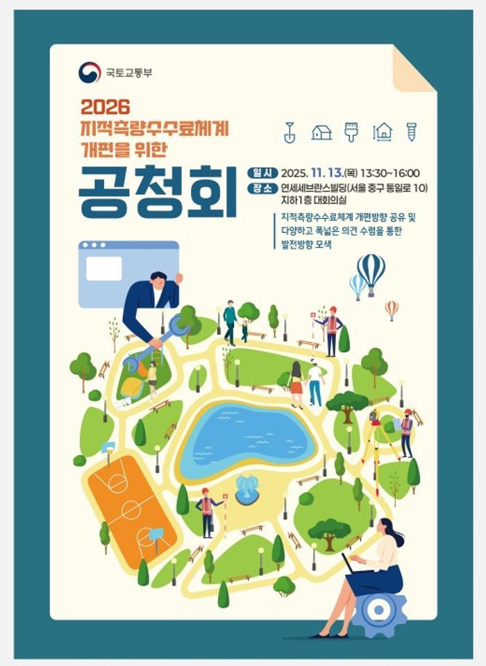 국민이 쉽게 이해하고 신뢰할 수 있는 지적측량 수수료 체계를 마련하기 위해 진행되는 이번 행사에는 측량업계·수요기관은 물론 관심 있는 국민 누구나 참석해 수수료 개선 방안을 공유하고 폭넓은 의견을 제시할 수 있다.
