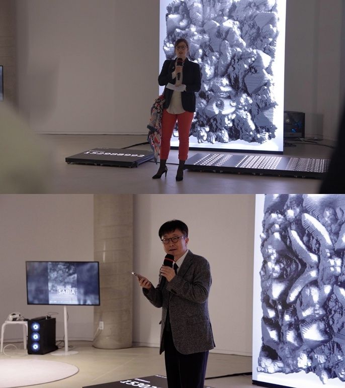 오는 16일까지 열리는 이번 전시에서는 소녀의 감정 파편이 가상 공간을 가득 메우며 ‘감정의 속도’로 전환되는 묘한 감각을 선사하는 ‘The Exploding Girl’과 음악과 인공지능, 감정 데이터로 달에서는 음악을 어떻게 들을지에 대한 답을 탐색하는 ‘How to Listen to Music on the Moon’, 우리가 궁금해하는 유명인사들을 AI로 살아숨쉬게 한 ‘Hush Now’, 자연이 VR공간 속에서 탄생해 다시 숨 쉬는 것을 그려낸 ‘Sabia’, 실시간 가상화폐 데이터를 빛과 정보의 결정체로 변환한 ‘Crystals’까지 총 다섯 작품을 만날 수 있다.