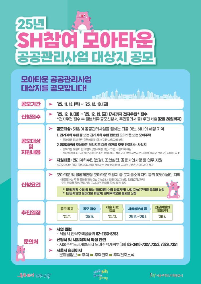 SH참여 모아타운 공공관리사업 공모…대상지 15곳으로 확대