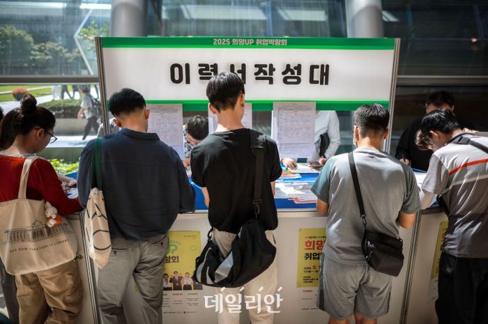 지난 6일 세종시 어진동 세종컨벤션센터에서 열린 2025 세종청년취업박람회에서 구직자들이 채용 게시판을 살펴보고 있다. ⓒ뉴시스