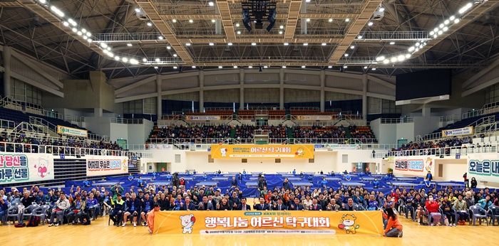 한국거래소가 부산 기장체육관에서 부산지역 노인복지관을 이용하는 어르신 1100여명이 참여한 ‘제3회 KRX와 함께하는 행복나눔 어르신 탁구대회’ 개최를 지원했다고 12일 밝혔다.