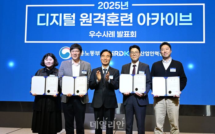 한국산업인력공단은 12일 서울 글래드 여의도에서 ‘2025년 디지털 원격훈련 아카이브 우수사례 발표회’를 개최했다. 사진은 디지털 원격훈련 아카이브 우수사례 수상자. ⓒ한국산업인력공단