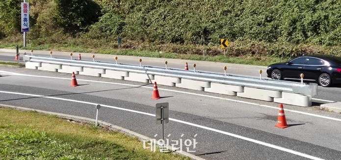한국세라믹기술원이 신우산업개발과 개발한 회전형 방호블록이 원주 IC 부근에 설치된 모습.ⓒ세라믹기술원
