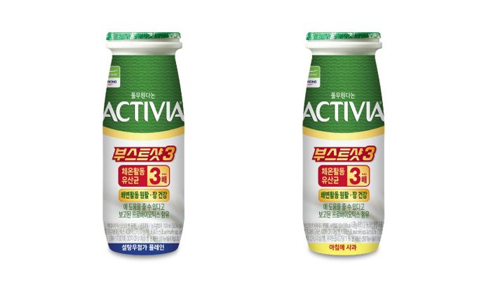 '액티비아 부스트샷3'는 브랜드 핵심 유산균인 '비피터스 액티레귤라리스'를 액티비아 병 플레인 제품 대비 3배[1][30억 CFU 이상/병(보장균수)] 담아낸 100ml 샷 타입의 마시는 요거트다.