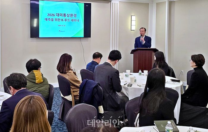 12일 열린 오프라인 세미나는 미국 현지 한국 농식품 수입업체를 대상으로 진행됐다. 참석자들은 최근 미국의 빈번한 통상정책 변화와 관세 부담 등 업계가 겪는 어려움을 공유하고 2026년 통상환경 전망, 주요 정책 변화, 현지 대응전략을 함께 논의했다. 현장 질의응답을 통해 바이어들의 애로사항도 수렴했다.