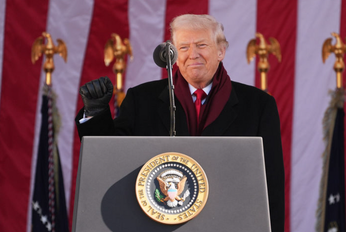 도널드 트럼프 미국 대통령이 11일 워싱턴DC 인근 국립묘지에서 연설하고 있다. ⓒAP/뉴시스
