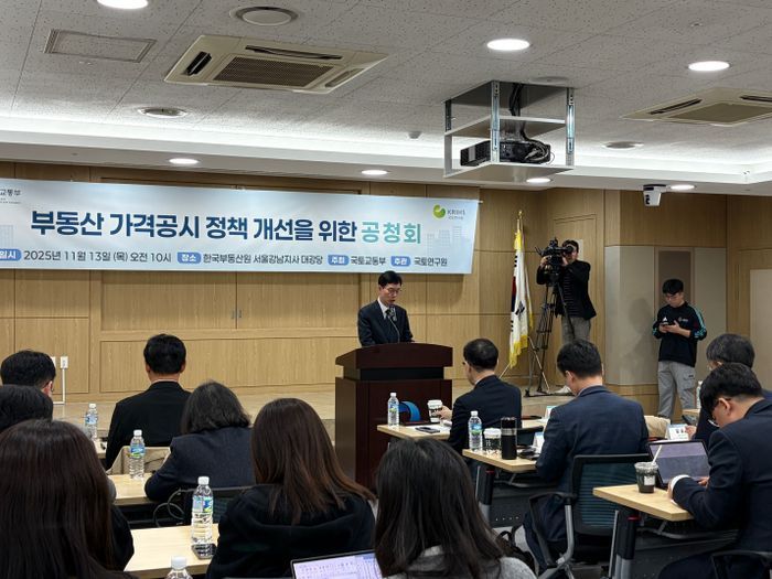 김명수 국토연구원 원장직무대행이 13일 한국부동산원 서울강남지사에서 개최된 ‘부동산 가격공시 정책 개선을 위한 공청회'에서 발언하고 있다.ⓒ데일리안 배수람 기자