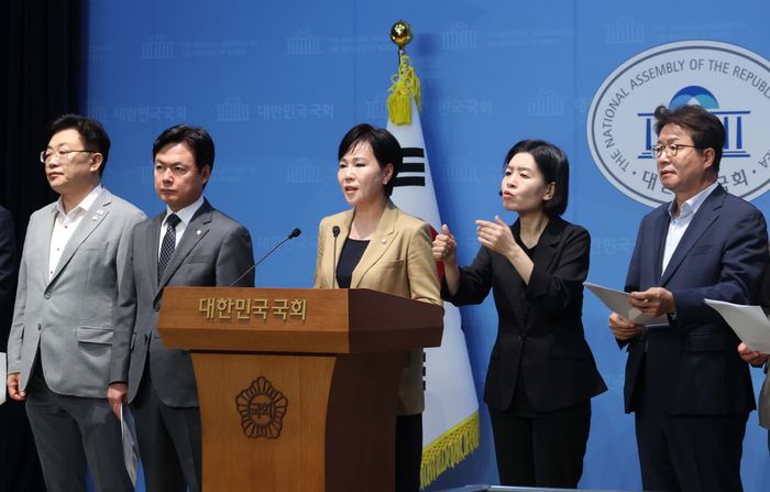 전현희 더불어민주당 3대특검 종합대응특위 위원장과 의원들이 지난달 10일 오전 국회 소통관에서 '오세훈 서울시장의 명태균 게이트 연루 혐의 등 불법혐의' 수사 촉구 기자회견을 하고 있다. ⓒ뉴시스