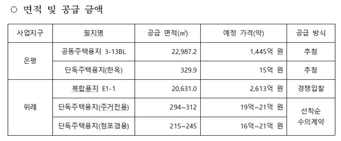 이번 분양에는 은평 공동주택건설용지(3-13블록)와 위례 주상복합용지(E1-1)가 포함돼, 서울시 내 희소한 주택건설용지를 찾는 개발사의 수요에 부응하고 입찰 경쟁률도 높을 것으로 예상된다.