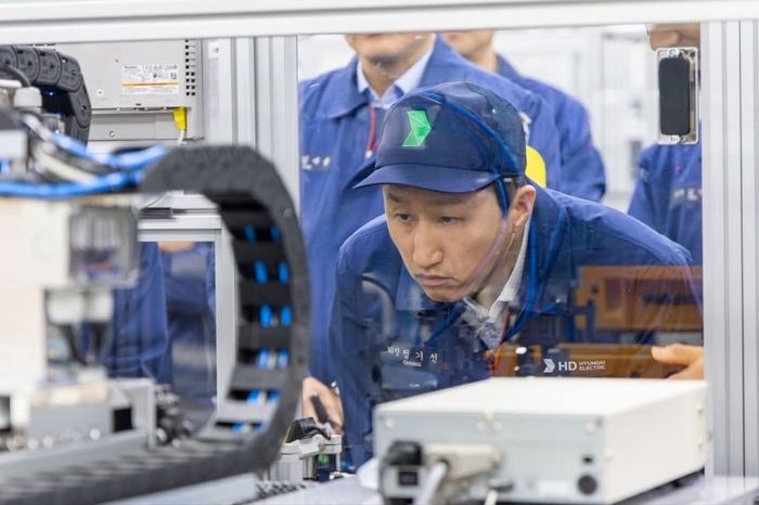 정기선 HD현대 회장이 13일 충북 청주의 HD현대일렉트릭 배전캠퍼스 건설 현장과 충북 음성의 HD현대에너지솔루션, HD현대건설기계 사업장을 차례로 방문했다. ⓒHD현대 인스타그램
