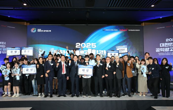 방송미디어통신위원회는 14일 서울에서 사회 문제에 대한 국민 공감대 형성 및 실천의식 제고를 위해 '2025 대한민국 공익광고제'를 열고 수상자들과 기념촬영을 하고 있다.ⓒ방송미디어통신위원회