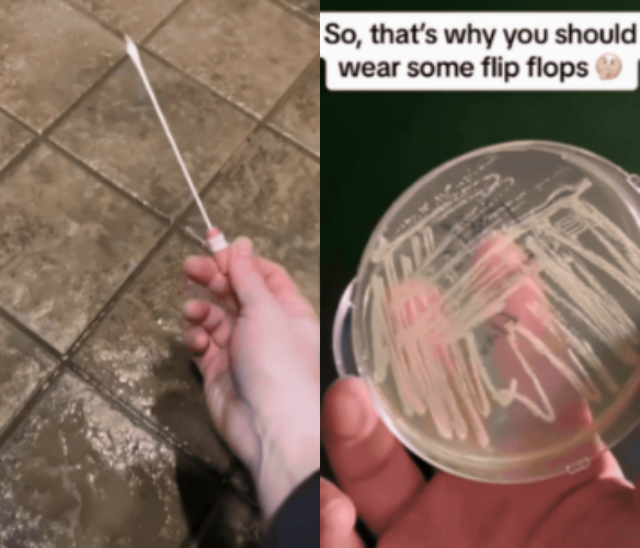 영상에서 닉 아이커는 자신이 다니는 체육관 공용 샤워실 바닥을 면봉으로 문지른 뒤 이를 특수 인큐베이터에 배양했다. 이후 용기 안에 두꺼운 박테리아 층이 형성되자 "이것이 바로 공용 화장실에서 슬리퍼를 신어야 하는 이유"라고 설명했다.