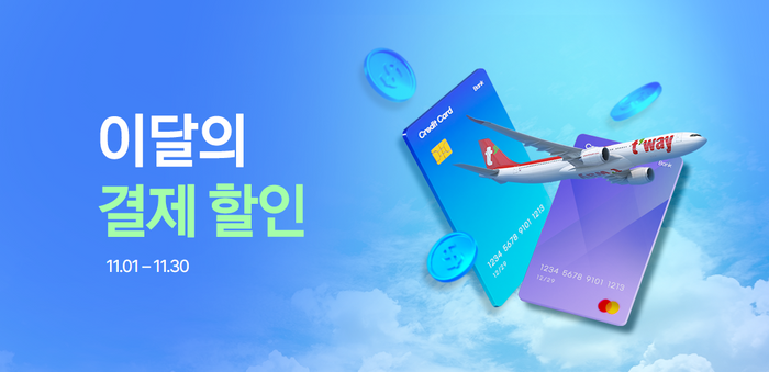 티웨이항공은 오는 30일까지 홈페이지와 모바일 앱(웹)에서 결제 제휴를 통한 '이달의 결제 할인 프로모션'을 진행한다고 17일 밝혔다.