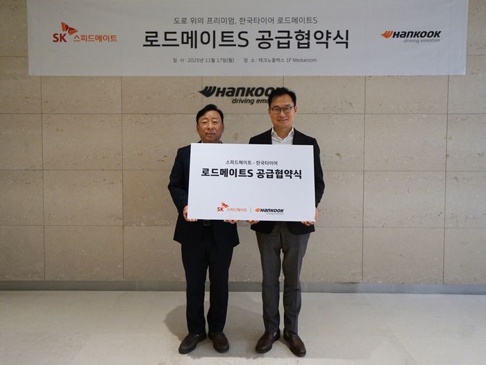 한국타이어앤테크놀로지(한국타이어)는 17일 오전 경기도 성남시 판교 소재 본사 테크노플렉스에서 SK스피드메이트와‘로드메이트 S’ 신규 론칭 및 타이어 공급에 관한 협약을 체결했다고 이날 밝혔다.