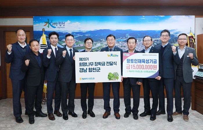 NH투자증권이 경상남도 합천군에 거주하는 중·고생 10명에게 희망나무 장학금 1500만원을 전달했다.