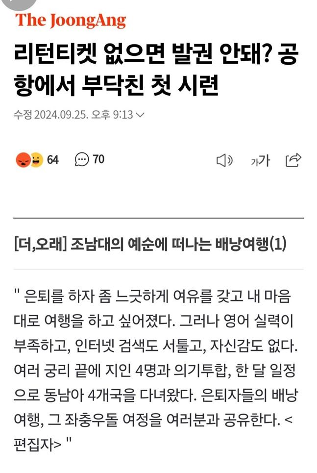 예순에 떠나는 배낭여행 기사 ⓒ