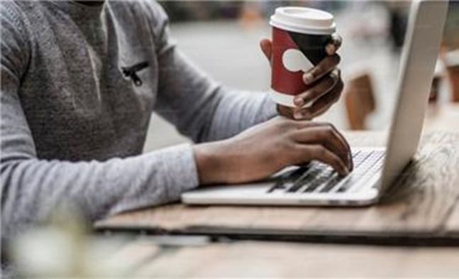 카페에서 노트북을 펼쳐 놓고 글을 쓰고 있는 모습 ⓒ