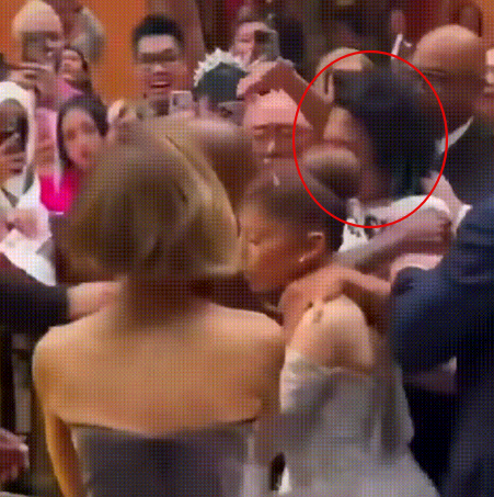 예상치 못한 상황에 아리아나 그란테는 놀란 표정을 지었고, 옆에 있던 배우 신시아 에리보가 즉시 남성을 떼어내며 불쾌감을 드러냈다. 이후 신시아 에리보는 놀란 아리아나 그란데를 진정시키며 안아주는 모습까지 영상에 담겼다.