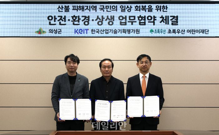 한국산업기술기획평가원은 올해 대형 화재를 겪었던 의성군민들이 안전한 일상을 누릴 수 있도록 오늘 의성군, 초록우산어린이재단(대구지역본부)과 업무협약을 체결했다고 18일 밝혔다.