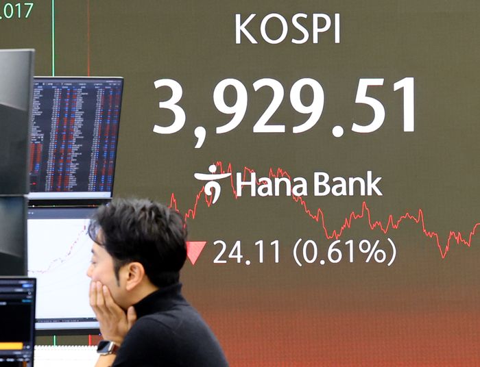 한국거래소에 따르면, 이날 코스피 지수는 전 거래일보다 24.11포인트(0.61%) 내린 3929.51에 장을 마쳤다. 지수는 13.02포인트(0.33%) 오른 3966.64로 출발했으나 이내 하락 전환했다.