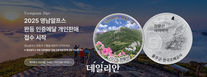 한국조폐공사는 내달 1일부터 12일까지 공사 쇼핑몰에서 2025년도 영남알프스 완등 인증 기념메달 판매 접수를 시작한다.