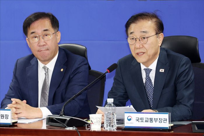 김윤덕 국토교통부 장관이 20일 서울 여의도 국회 의원회관에서 열린 당정협의회에서 발언을 하고 있다.