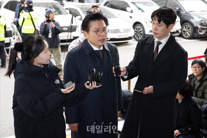자유한국당 당대표였던 황교안 전 국무총리가 20일 오후 서울 양천구 서울남부지방법원에서 열린 '자유한국당 패스트트랙(신속처리안건) 충돌 사건' 1심 선고 공판에 출석하기 전 취재진의 질문에 답변하고 있다.
