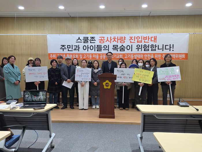 고기초등학교 학부모회와 지역주민들은 20일 경기도의회 브리핑룸에서 기자회견을 열고 "보행로도 없는 편도 1차선 등하굣길에 16만대 공사차량이 4년간 통행하는 것은 있을 수 없는 일"이라며 "국민의 생명·안전권은 행정심판과 개발 논의의 대상이 아니라 헌법의 핵심 가치"라고 강조했다.