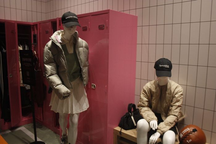 다음은 운동러의 옷장이다. 철제 사물함, 기다란 벤치, 농구공 등 미국 하이틴 영화에서 자주 보던 라커 룸처럼 꾸며져 있었다. 사물함에는 후드티, 맨투맨 등 캐주얼하고 화려한 애슬레저(애슬레틱과 레저의 합성어) 제품이 주로 걸렸다.