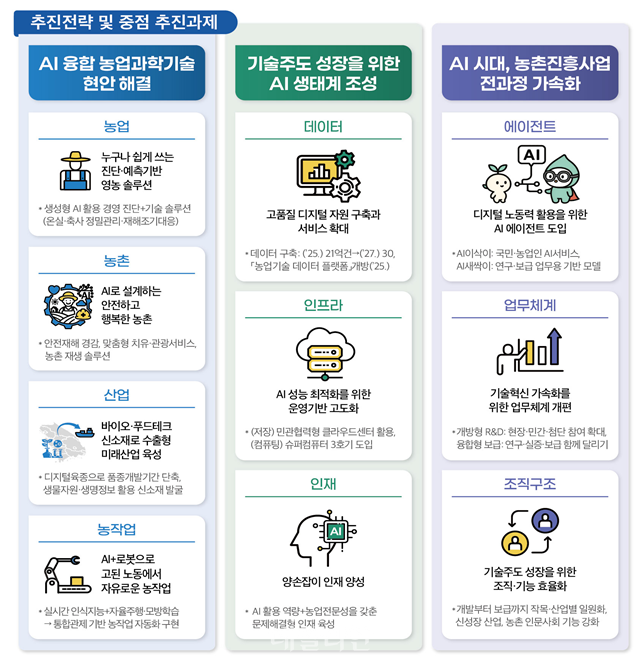 농촌진흥청이 수행하는 농촌진흥사업의 전 과정을 AI 기반으로 빠르게 전환하는 구조 개편도 추진한다.