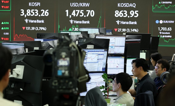 21일 한국거래소에 따르면 코스피지수는 전 거래일 대비 151.59포인트(3.79%) 내린 3853.26에 거래를 마쳤다. 지수는 전장보다 96.15포인트(2.40%) 밀린 3908.70으로 출발해 약세를 이어갔다.