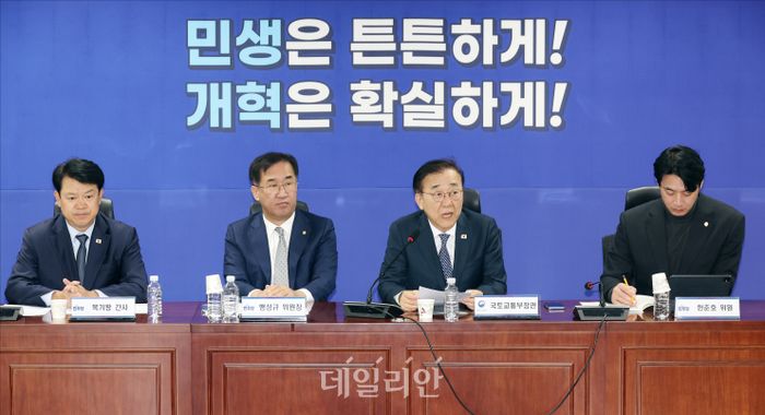 김윤덕 국토교통부 장관이 20일 서울 여의도 국회 의원회관에서 열린 당정협의회에서 발언을 하고 있다.