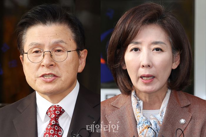 자유한국당 당대표와 원내대표였던 황교안 전 국무총리와 나경원 국민의힘 의원이 20일 오후 서울 양천구 서울남부지방법원에서 열린 '자유한국당 패스트트랙(신속처리안건) 충돌 사건' 1심 선고 공판에서 각각 벌금 1900만원과 벌금 2400만원을 선고 받은 뒤 나와 취재진의 질문에 답변하고 있다.