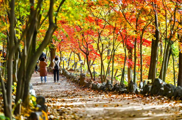 21일 경남 함안군 입곡군 근처에서 관광객들이 단풍을 즐기고 있다. ⓒ뉴시스