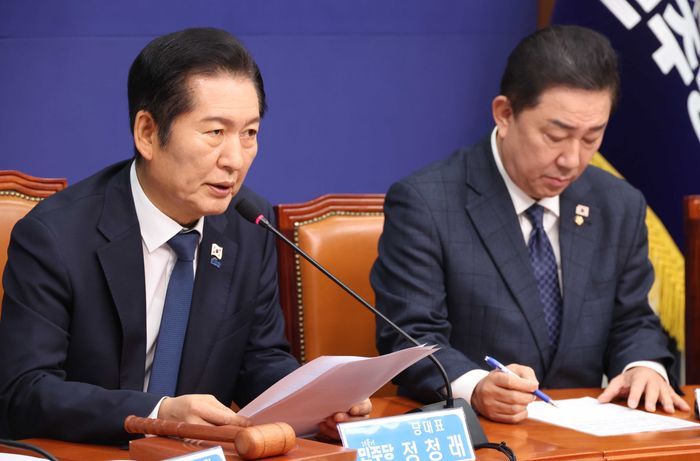 정청래 민주당 대표는 24일 국회에서 열린 최고위원회의에서 "더 이상 국민을 기만하는 행위는 용납될 수 없다. 무관용의 원칙으로 12·3 불법 계엄 내란 잔재를 확실하게 청산하겠다"며 이같이 밝혔다.