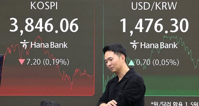 24일 오후 서울 중구 하나은행 딜링룸 현황판에 코스피 지수 등이 표시되고 있다.ⓒ연합뉴스