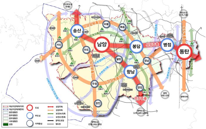 시는△동탄생활권은 신산업 생태계 구축 및 친환경 생태도시 기반 마련 △동부생활권은 광역환승거점 조성을 통한 원도심 정비 및 관광산업 육성 △중부생활권은 산·학·연 연계 네트워크 조성 및 녹색관광벨트 구축 △서부생활권은 자동차·바이오 등 신성장산업 연계 클러스터 구축과 해양 관광산업 육성을 발전전략으로 제시했다.