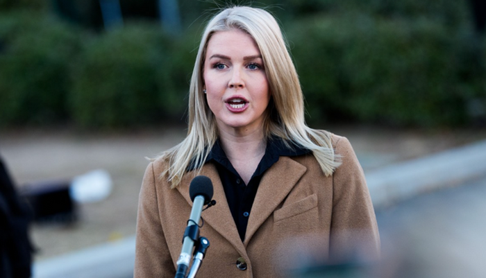 캐롤라인 레빗 미국 백악관 대변인이 24일(현지시간) 워싱턴DC 백악관에서 기자회견을 하고 있다. ⓒAP/뉴시스
