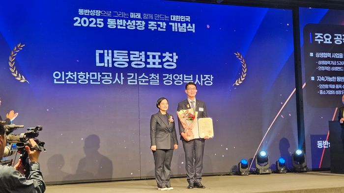 인천항만공사(IPA)는 ‘2025년 동반성장 주간 기념식’에서 김순철 경영부사장이 대·중소기업 동반성장 유공 대통령 표창을 수상했다고 25일 밝혔다.