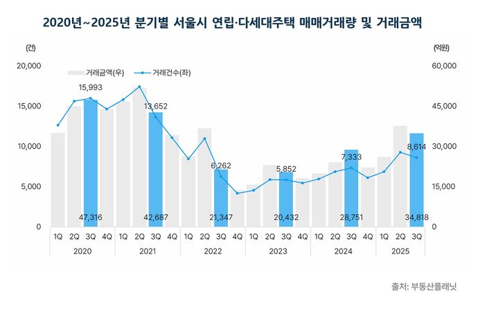 25일 부동산플래닛은 이 같은 내용의 '2025년 3분기 서울시 빌라 매매 및 전·월세시장 동향 보고서'를 발표했다.