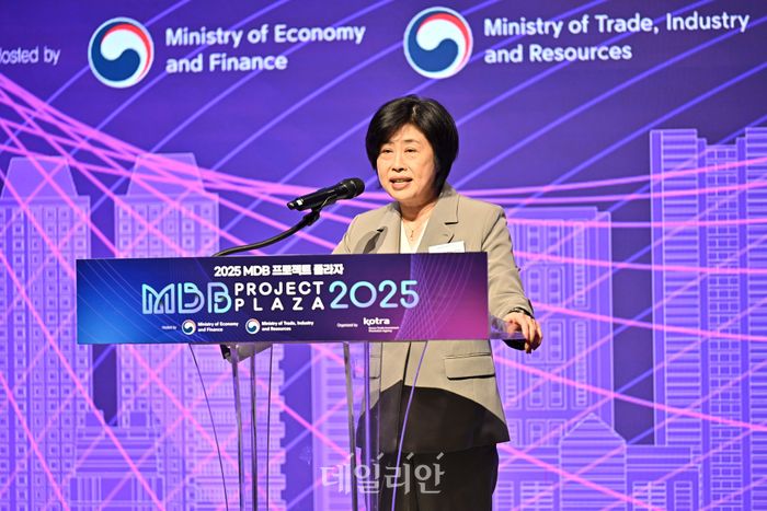 25일 서울 JW 메리어트 호텔에서 열린 ‘2025 MDB 프로젝트 플라자’에서 김명희 코트라 부사장 겸 산업혁신성장본부장이 축사를 하고 있다. ⓒ대한무역투자진흥공사