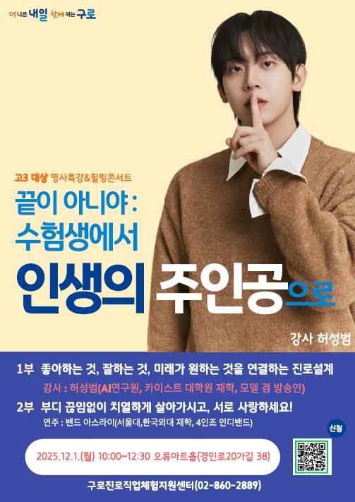 이번 프로그램은 단순한 강연이나 공연을 넘어 고등학교 졸업을 앞둔 청소년이 진로를 설계하고 정서적 회복을 경험할 수 있는 계기가 될 것으로 기대된다. 구는 진로 전환기 시기의 심리적 불안을 줄이고, 자기주도적인 선택을 지원하는 데 중점을 뒀다.