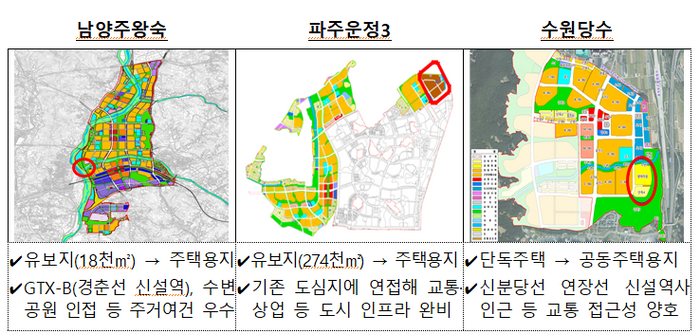 남양주왕숙·파주운정3·수원당수 등에서 용도 전환을 추진하는 택지.ⓒ국토교통부