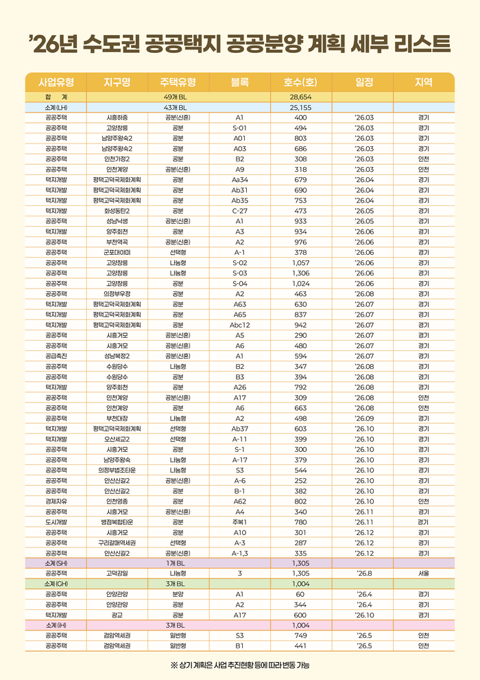 내년 수도권에서 분양되는 공공주택 단지 목록.ⓒ국토교통부