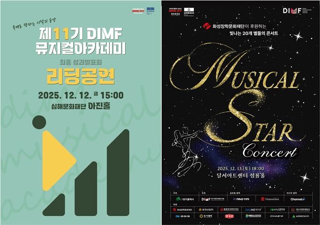 딤프(DIMF)가 12월 제11기 딤프 뮤지컬아카데미 최종 성과발표회 리딩공연과 ‘2025 딤프 뮤지컬스타 콘서트’를 연이어 선보인다.