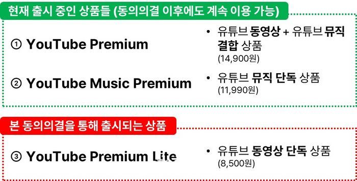 먼저 소비자의 선택권이 확대되도록 구글은 유튜브 동영상 단독 상품인 유튜브 프리미엄 라이트(유튜브 라이트) 요금제를 출시한다.