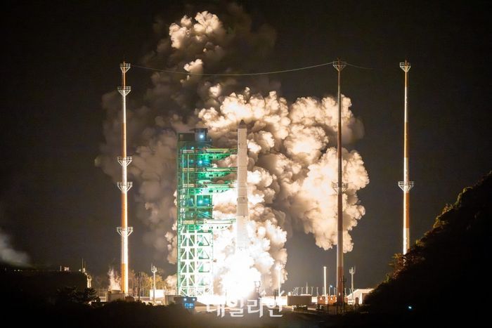 27일 전남 고흥 나로우주센터 제2발사대에서 누리호가 불꽃을 뿜으며 이륙하고 있다.ⓒ한국항공우주연구원